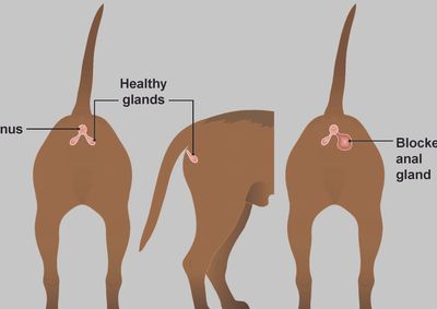 The anal glands are a pair of sacs that sit just inside the anus. They contain a strong smelling liquid used for marking territory. Healthy glands empty when your animal defecates. If this does not happen, they can overfill and block.