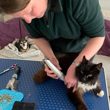 For long haired cats I can offer a sanitary groom which will include removal of soiled/matted fur around the rear end.